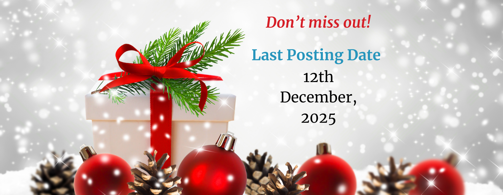 Please bear in mind that my last posting date before Christmas is 12th December.
